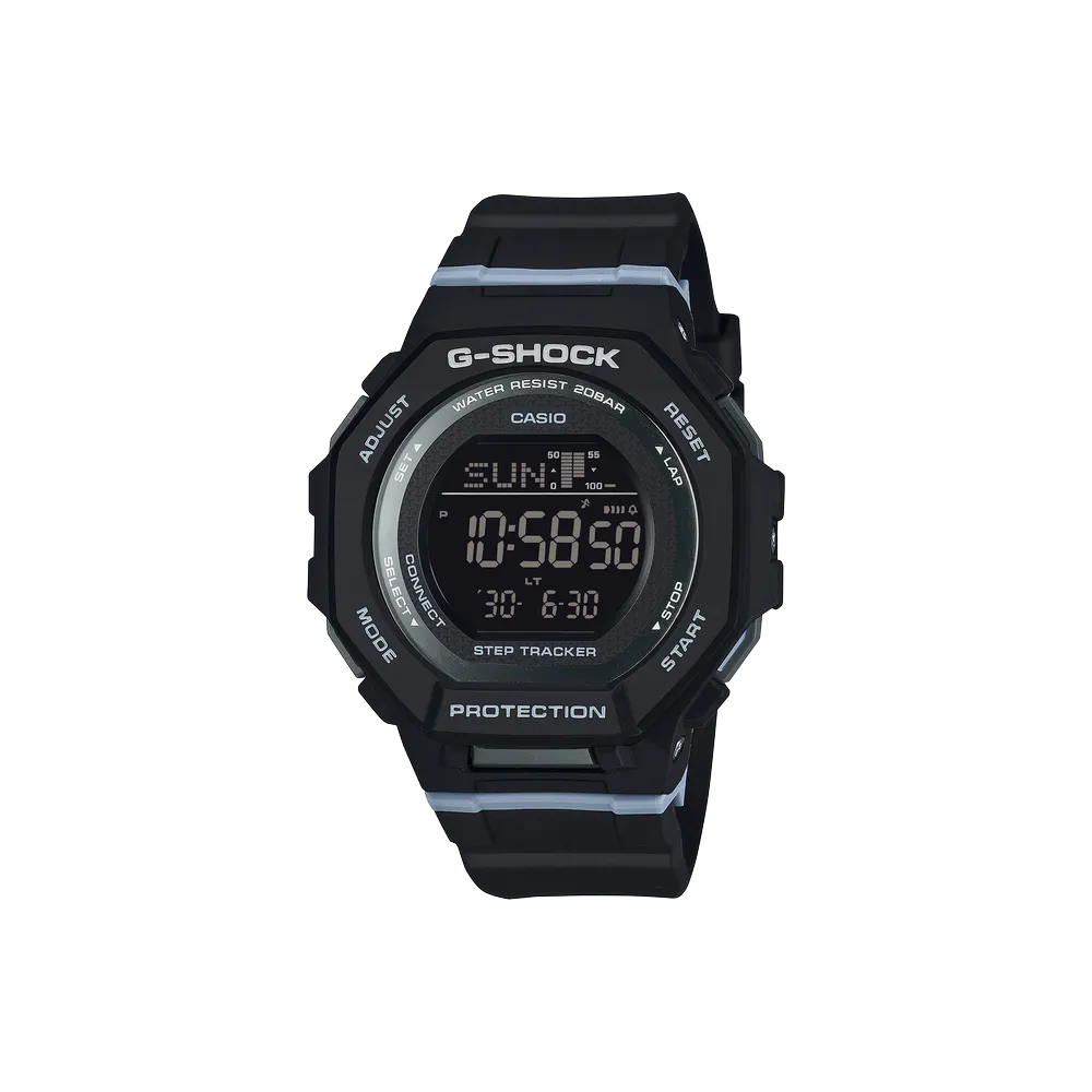 The GMD-B300-1 brings fitness tracking to G-Shock’s legendary toughness. This compact G-Squad model connects to your smartphone via Bluetooth, tracking your daily steps and keeping you motivated with goal progress right on your wrist.