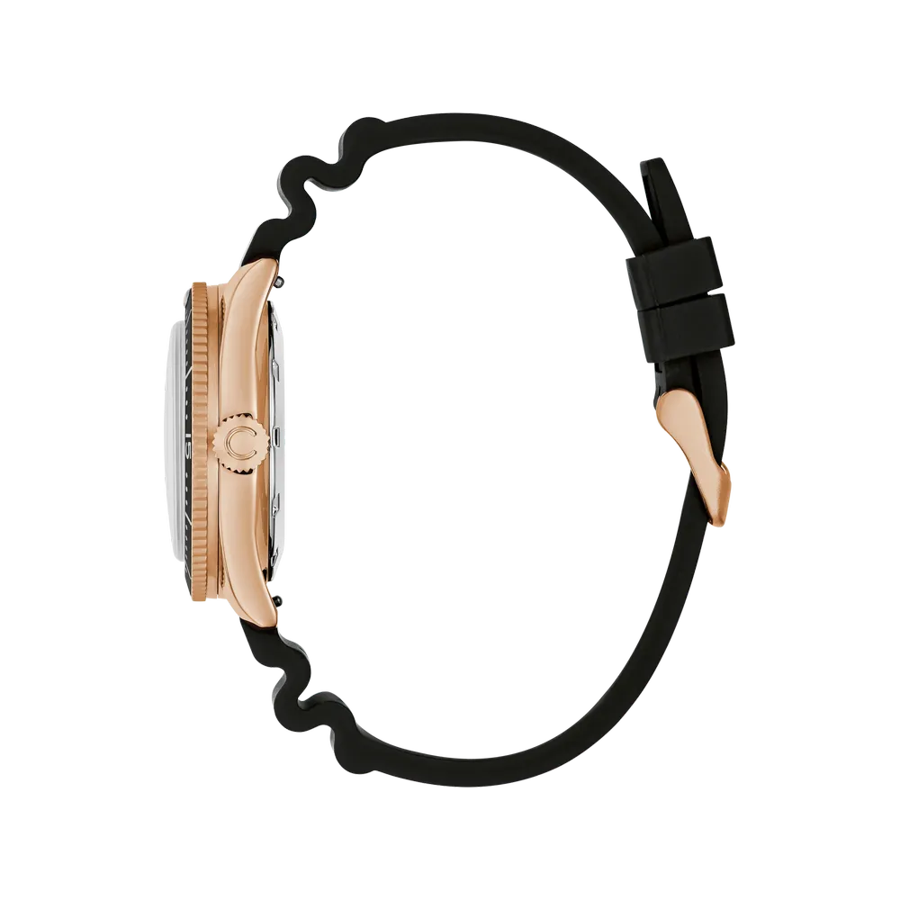 The understated Sea Hunter. Black dial against rose gold-tone case creates the sharpest contrast in the lineup, while the black rubber strap keeps things low-key. Same Miyota 8215, same 200m capability—just without the color commentary.