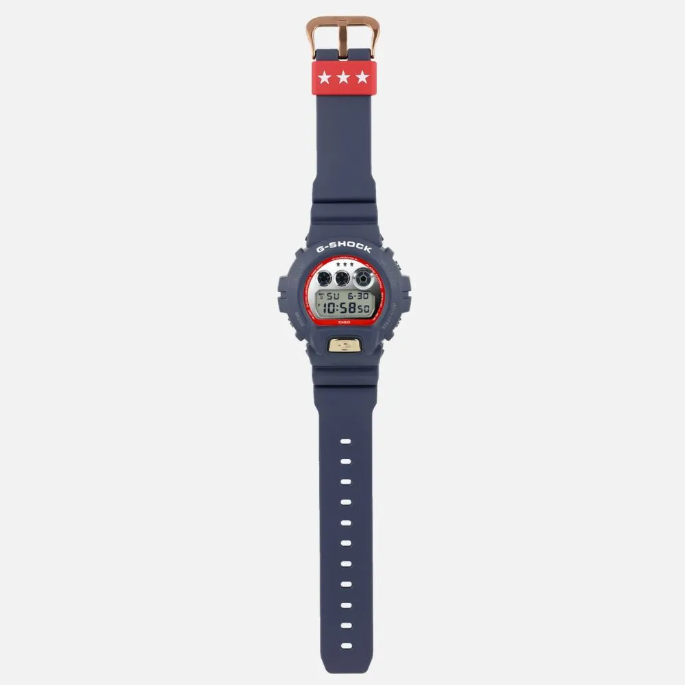 Take a moment to revel in the splendid display of patriotism embodied in the Casio G-SHOCK DW6900US24-2. This Independence Day exclusive pays homage to the land that catapulted G-SHOCK into mainstream admiration. Draped in a rich navy-blue hue accented with vibrant red trim around a striking silver-mirrored dial, this timepiece epitomizes the essence of American pride. The stars and stripes motif adorning the band loop, coupled with the engraved American flag on the case back, serves as a constant reminder of the nation’s enduring spirit.