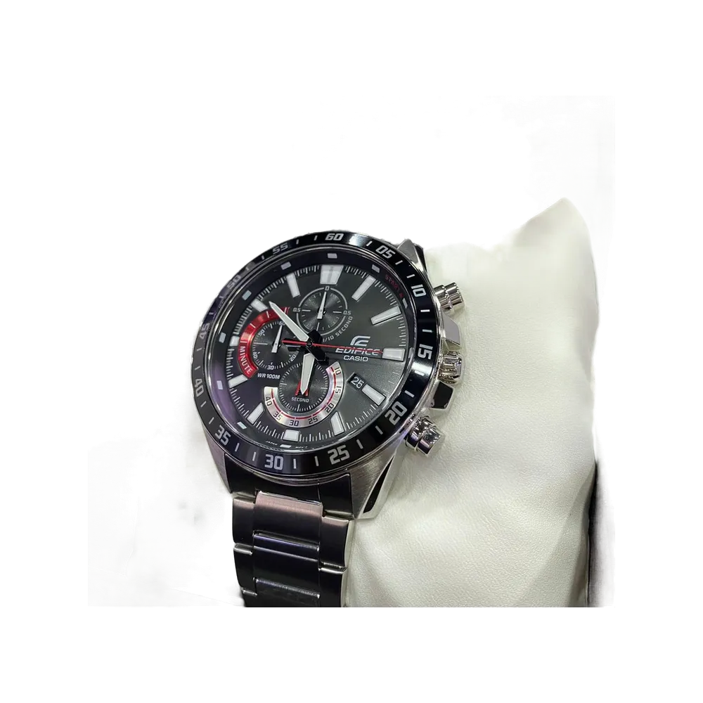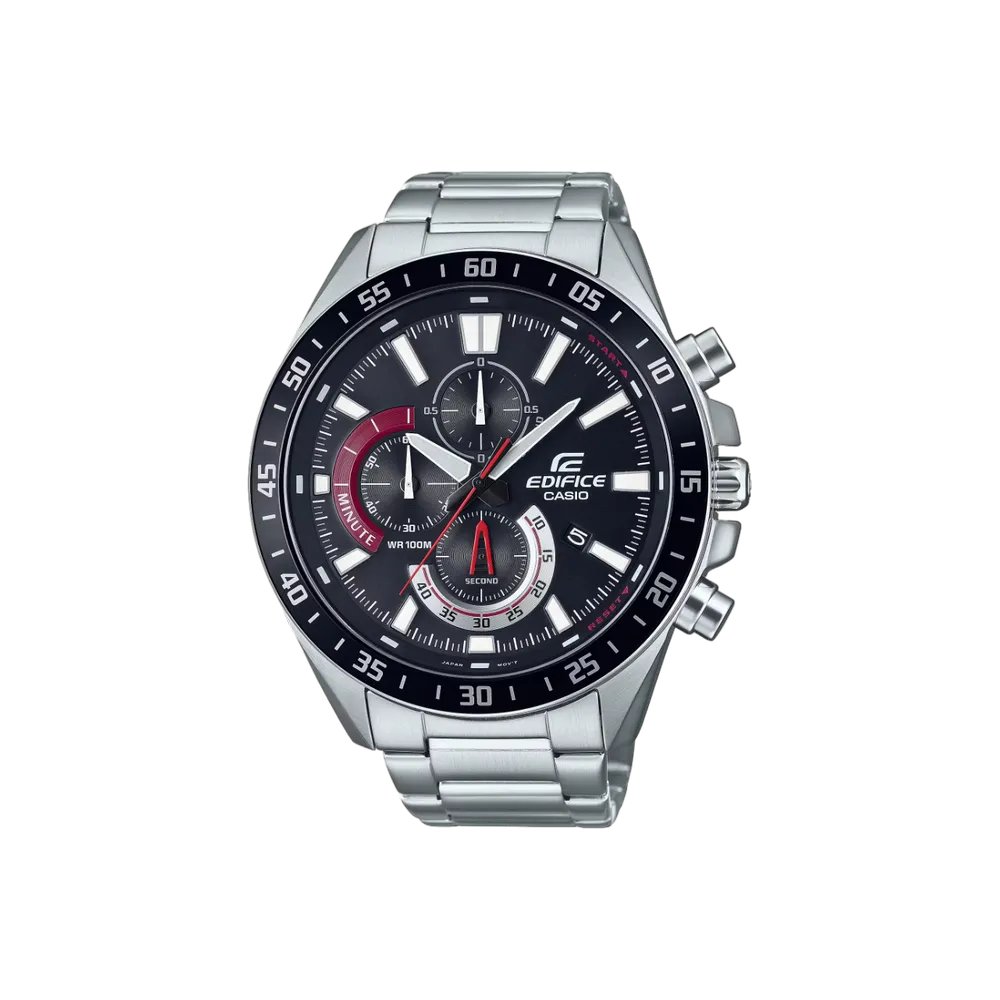The Casio Edifice line has always been about delivering motorsport aesthetics without the motorsport price tag. The EFV-620D-1A4V takes that mission seriously, pairing a bold 50.5mm case with a black and red dial that looks like it belongs on a racing dashboard.