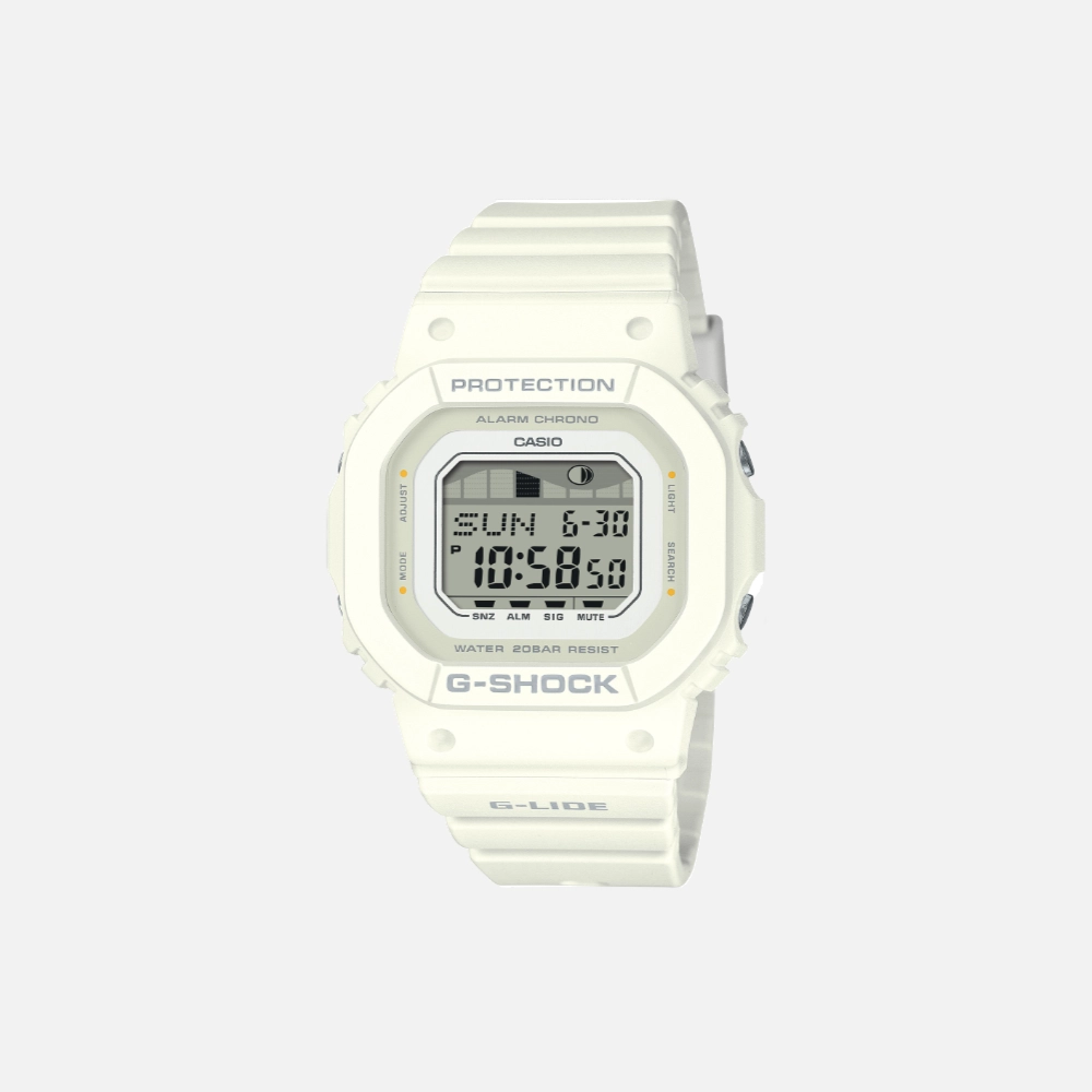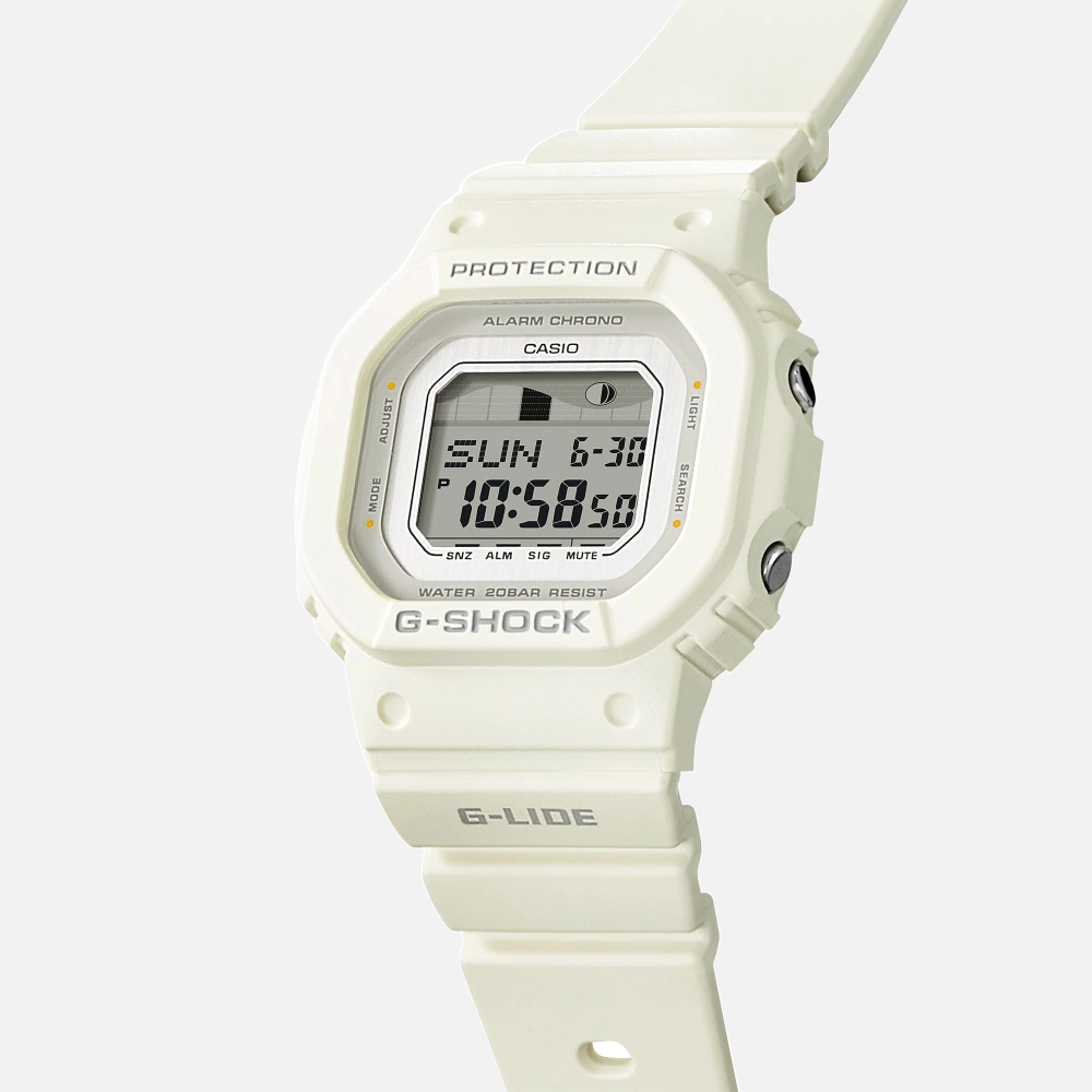 Introducing the Casio G-Shock G-LIDE GLX-S5600-7B, a watch crafted for those who live for the thrill of the ocean. Designed to accompany you on every wave, this high-performance surf watch combines functionality with style, making it an essential piece for surfers and ocean enthusiasts alike.