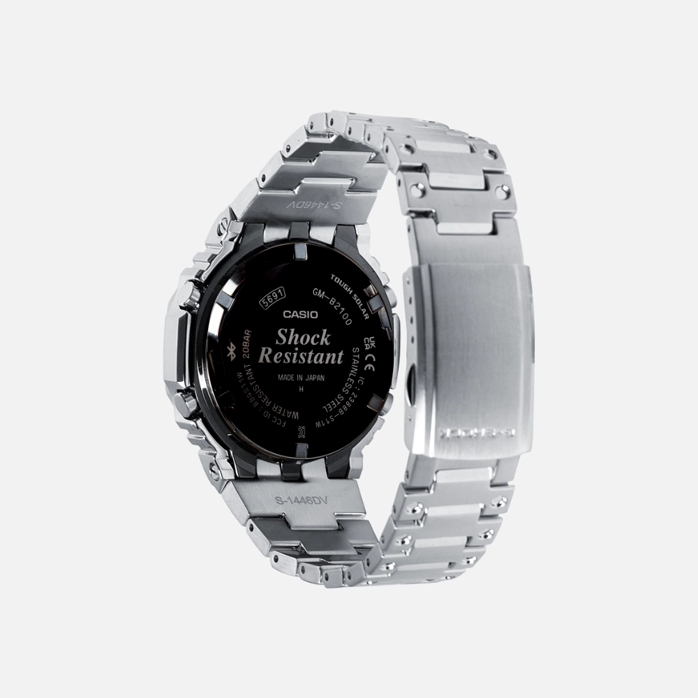 Powered by Tough Solar technology, the GMB2100AD-2A is not only eco-friendly but also reliable, with a battery life that lasts up to 18 months. Its Bluetooth connectivity allows for automatic time adjustments, ensuring precision wherever you are.