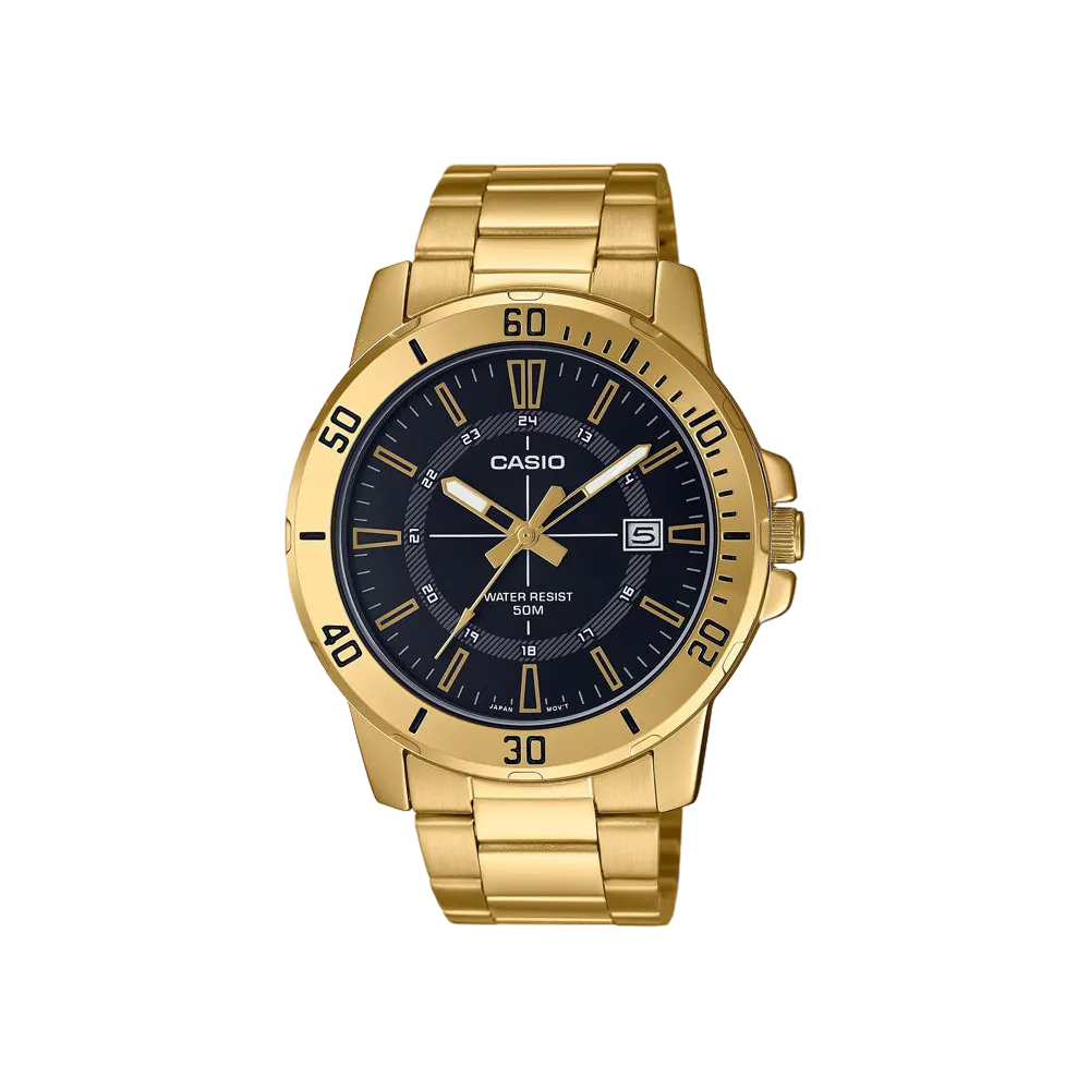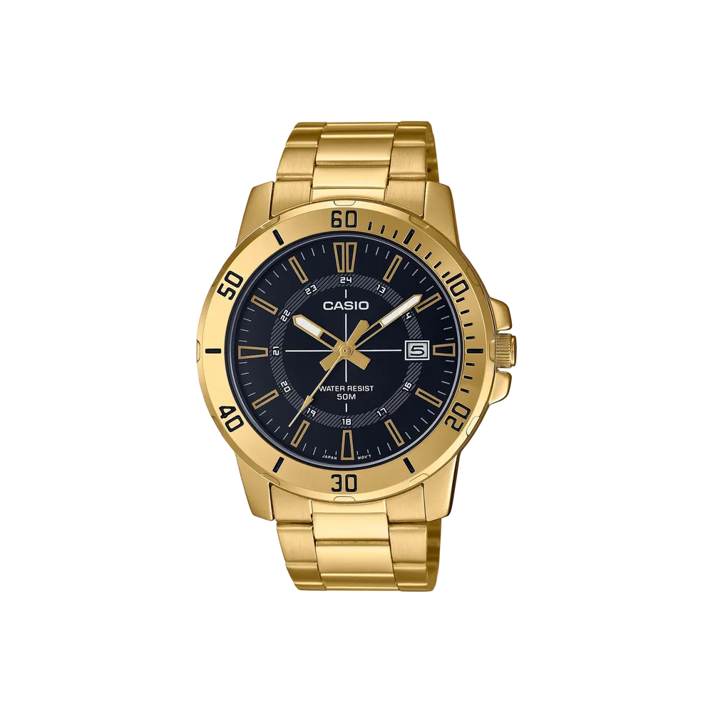 Casio MTP-VD01G-1CV Quartz Black Dial Gold Bracelet