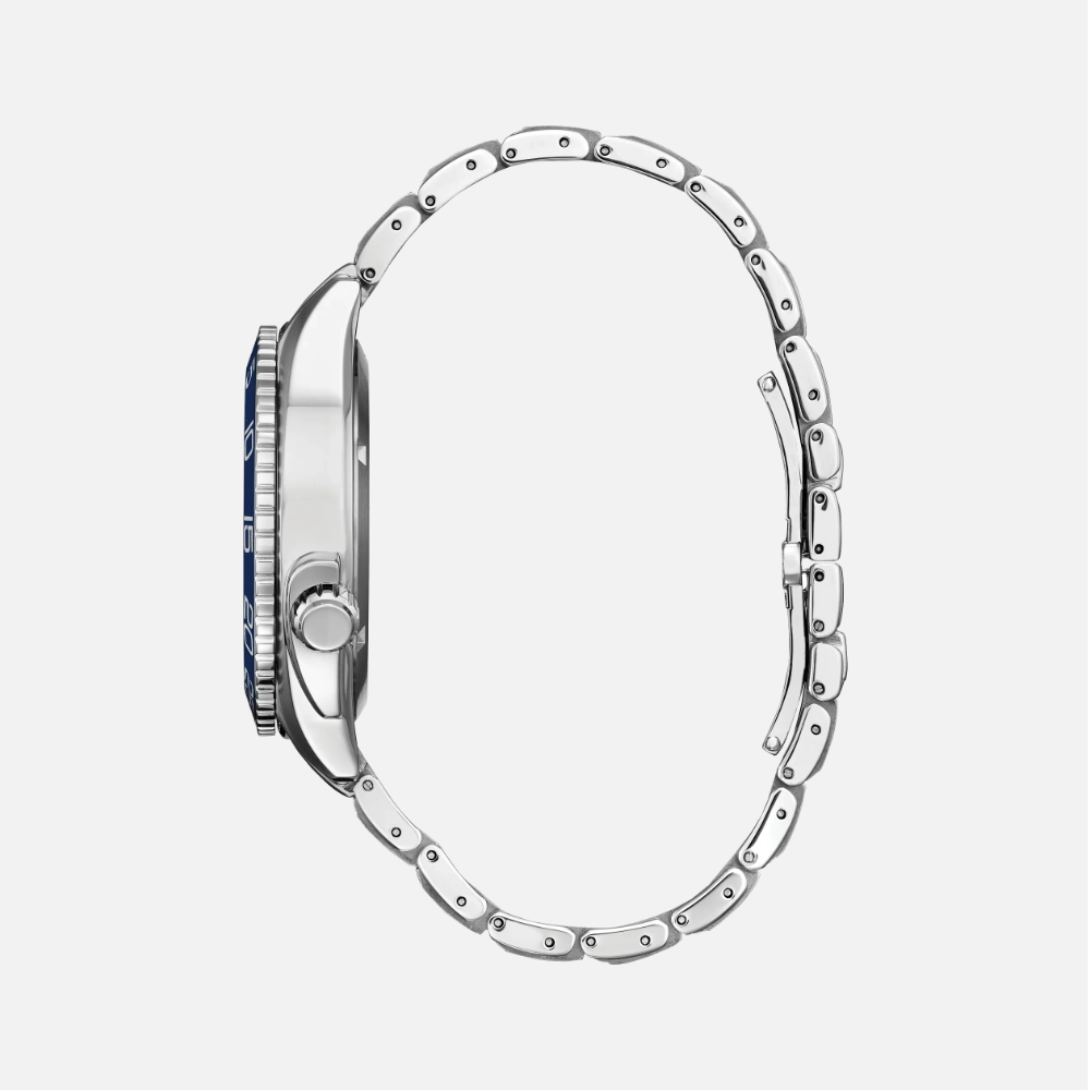 The 41mm stainless steel case is paired with a matching bracelet and a fold-over clasp with push-button release for security and ease of wear. A mineral crystal protects the dial, and the watch maintains a water resistance of up to 100 meters, making it durable enough for daily activity and light swimming. Its slim profile and polished accents strike the right balance between sporty resilience and understated sophistication.