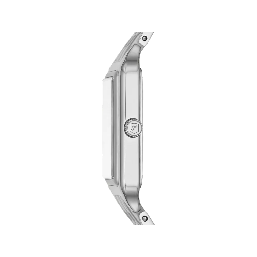 While the two-tone Raquel gets attention for its color play, the all-silver ES5221 takes the opposite approach. It’s the same elegant rectangular form stripped down to essentials—silver case, silver bracelet, white dial. Sometimes less really is more.