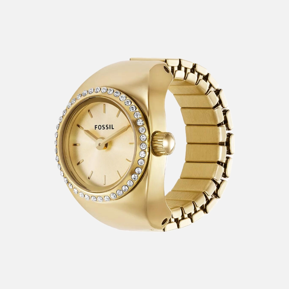 Fossil ES5319 Watch Ring Two-Hand Gold-Tone Analog Gold Dial Watch Ring