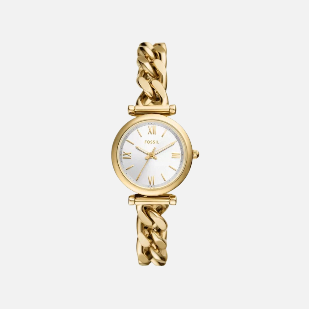 Fossil ES5329 Carlie Three-Hand White Dial Gold Chain Bracelet