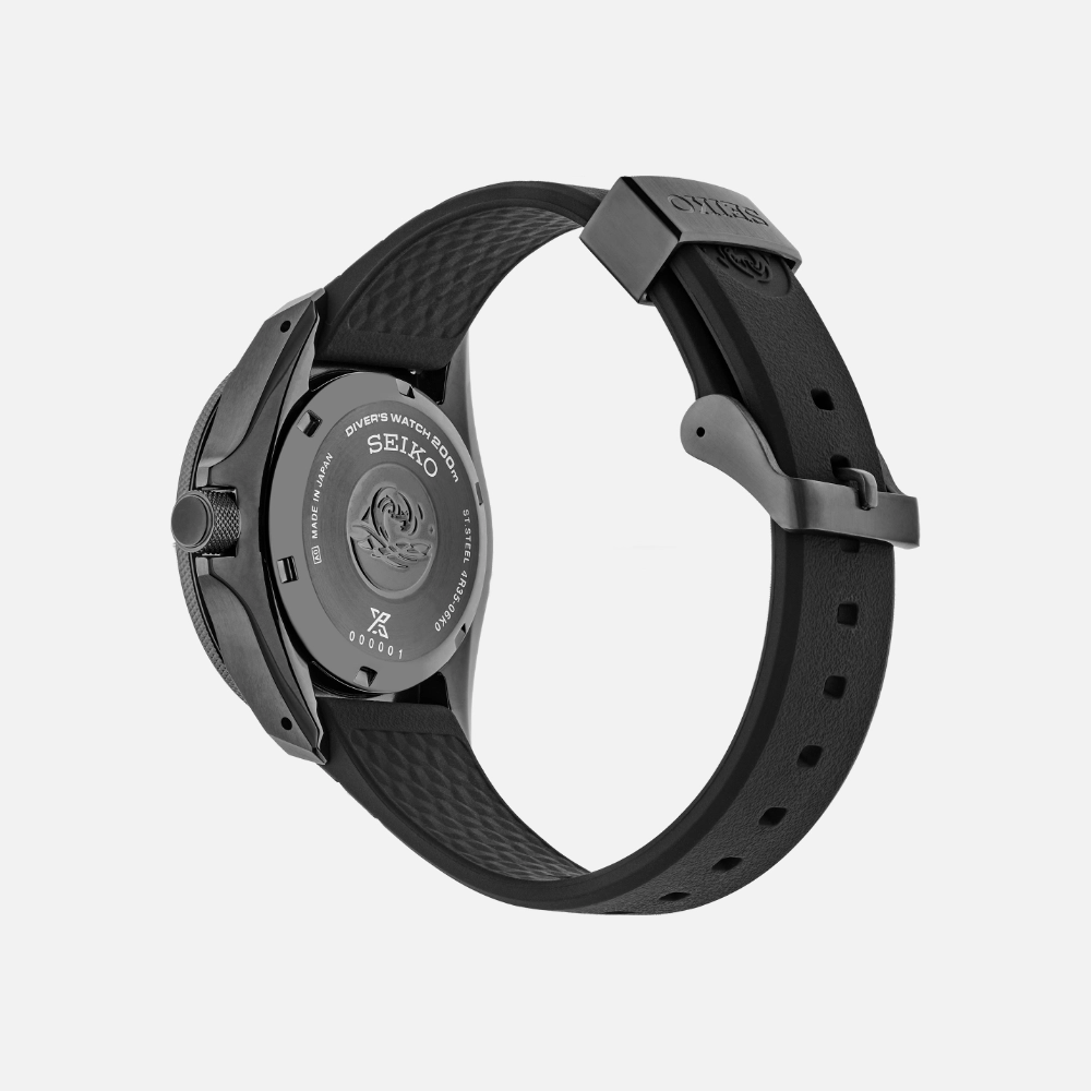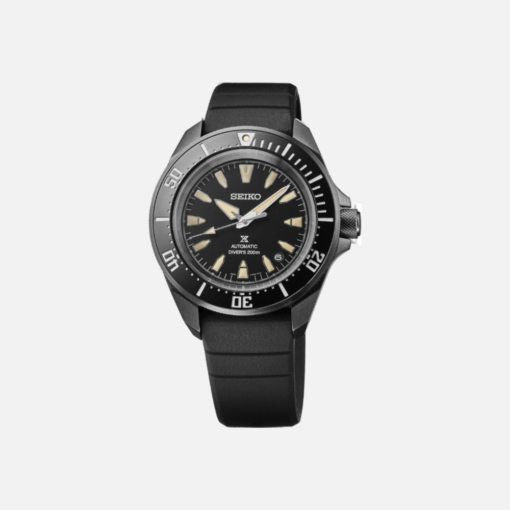This ISO-certified diver is no fashion prop it carries a 200 m water-resistance rating, complete with a screwdown crown and caseback to keep pressure at bay. The uni-directional elapsed-time bezel, rendered in matching black, pairs with a black silicone strap to maintain its tool-watch demeanor, while Seiko’s LumiBrite on hands and markers guarantees low-light clarity.