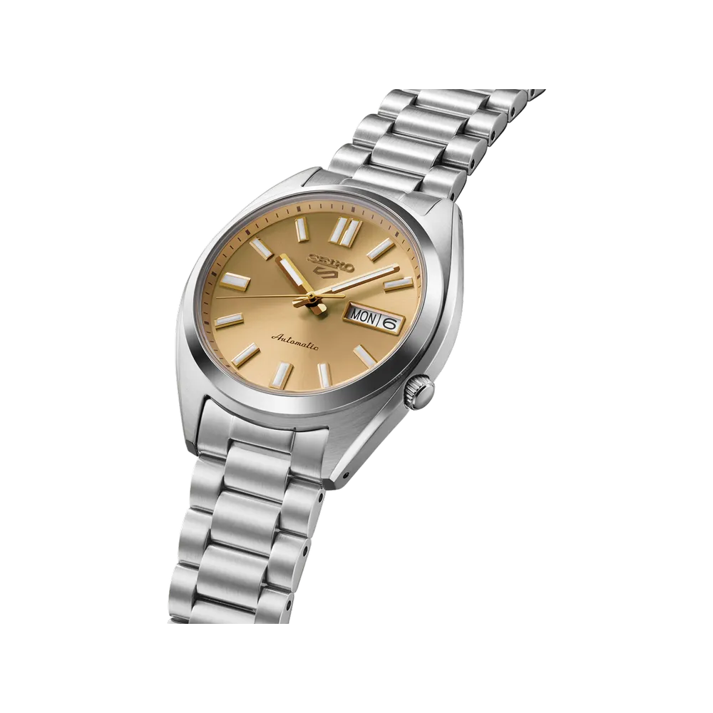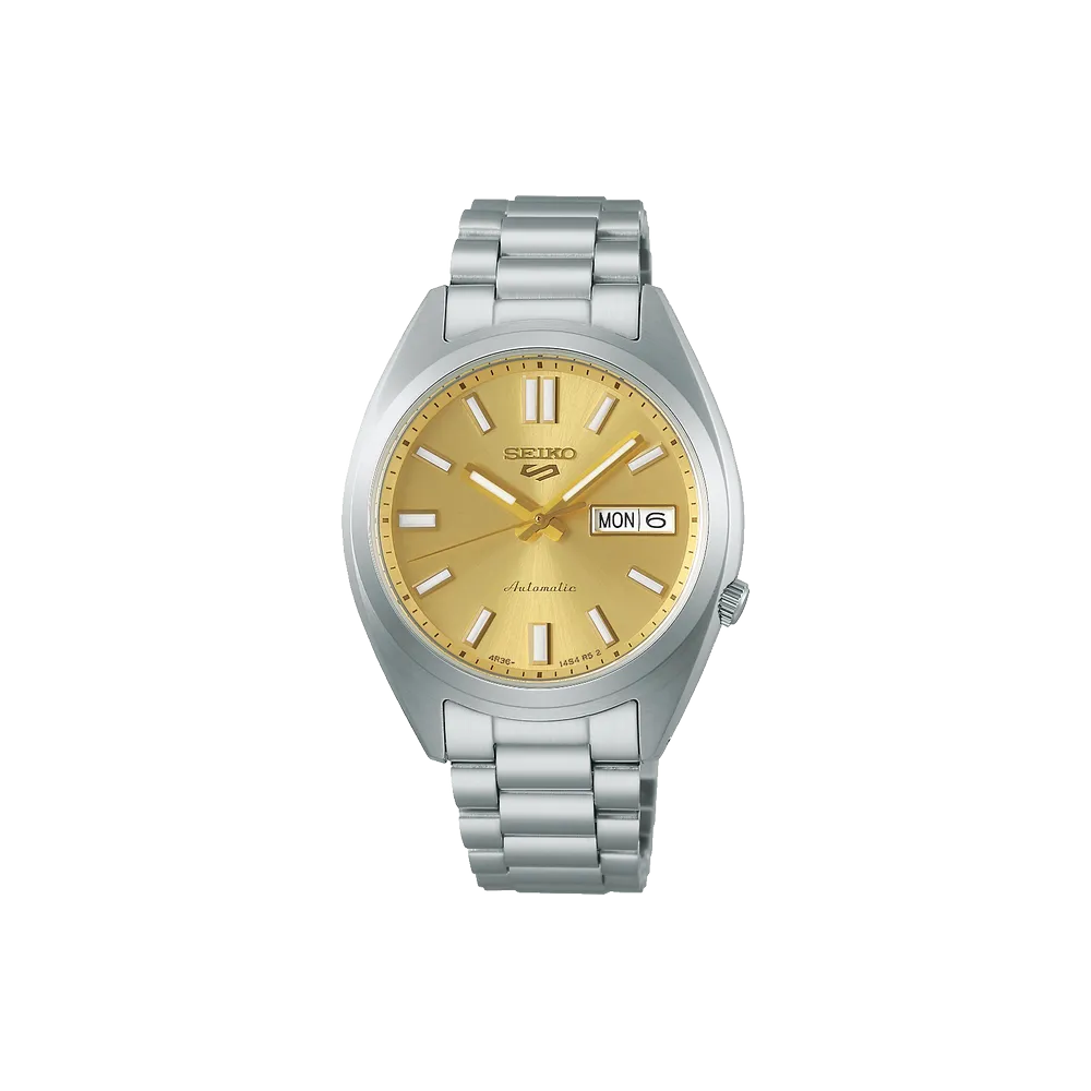 The Seiko SRPL59 revives the beloved SNXS series with a compact 37.4mm stainless steel case, golden sunray dial with diamond-cut indices, and the reliable 4R36 automatic movement with 41 hours of power reserve. 100m water resistant.