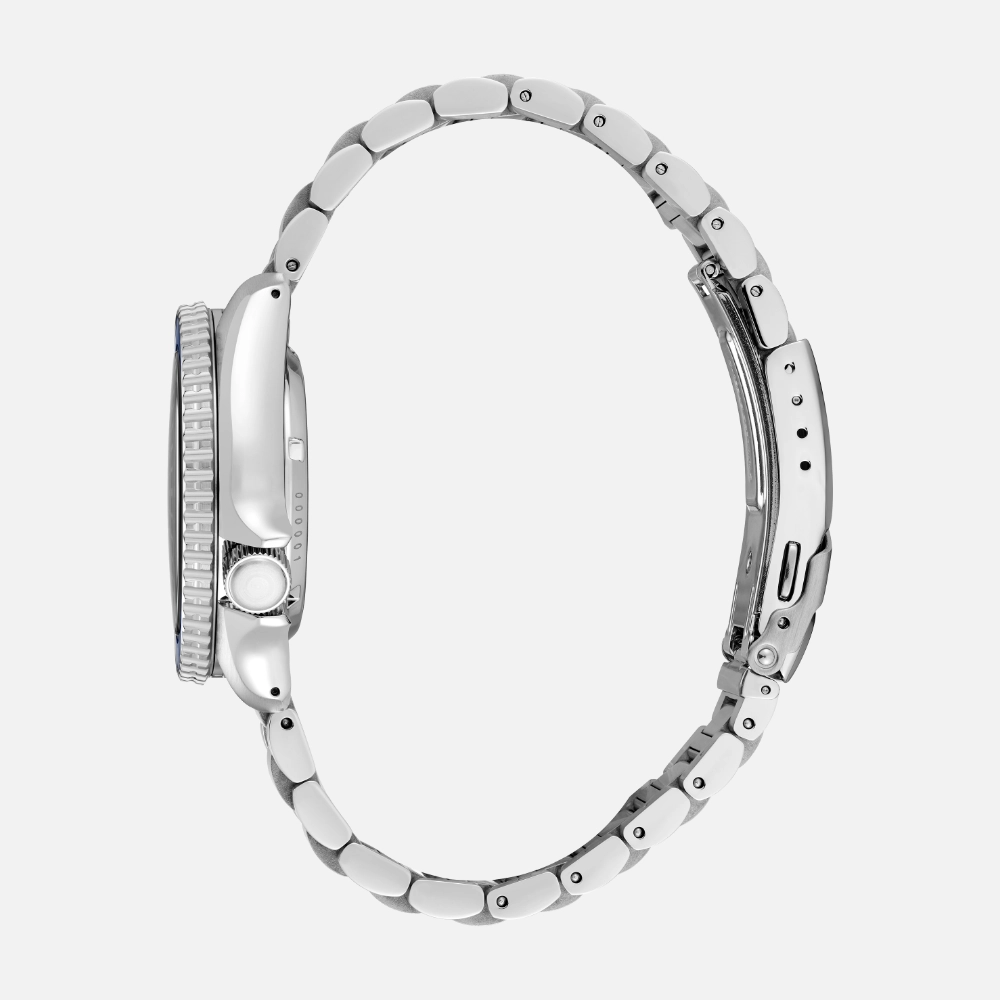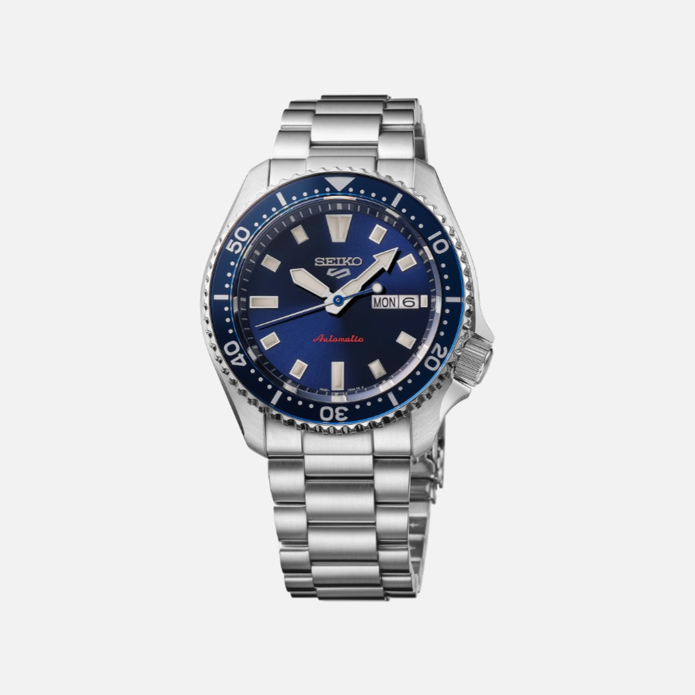 We at Seiko have built the SRPL83 as a respectful continuation of the SKX lineage. The case and dial layout recall those classic cues bold hour markers, a textured sunray dial, and robust hands but we’ve refined the details. A new bracelet with rounded links softens the way the watch sits on the wrist, and a glossy Hardlex bezel insert adds sheen and contrast to the deep blue of the dial. The “5 Sports” emblem is more than branding: it signifies durability, daily wear-worthiness, and style adapted from decades of Seiko’s dive-watch DNA.