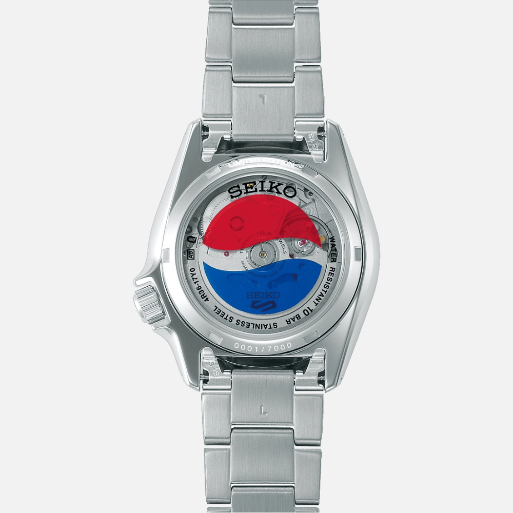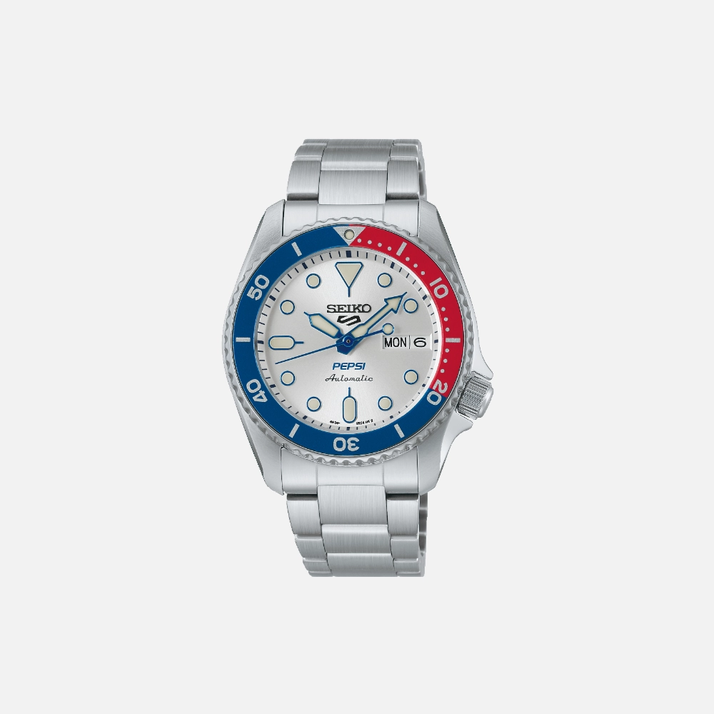 Seiko’s collaboration with Pepsi makes sense when you think about it—the brand’s had watches with red-and-blue bezels since the 1960s. The SRPL99 takes that heritage and packages it in the accessible 5 Sports line, limited to 7,000 pieces worldwide.